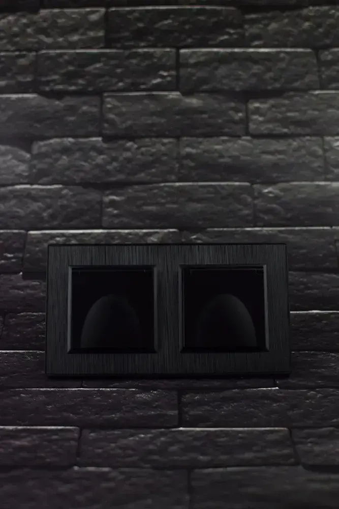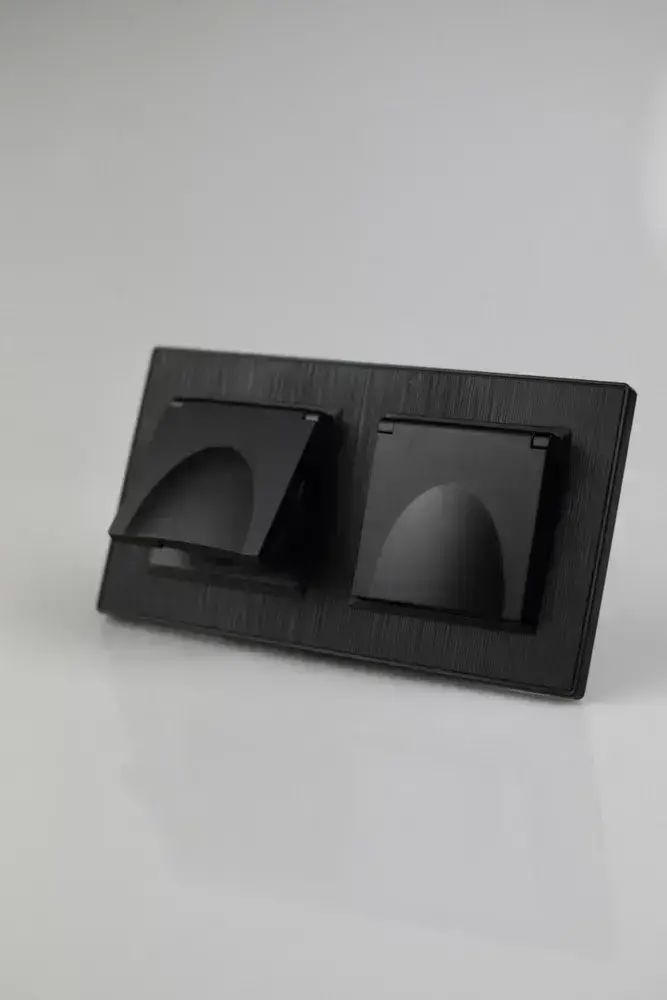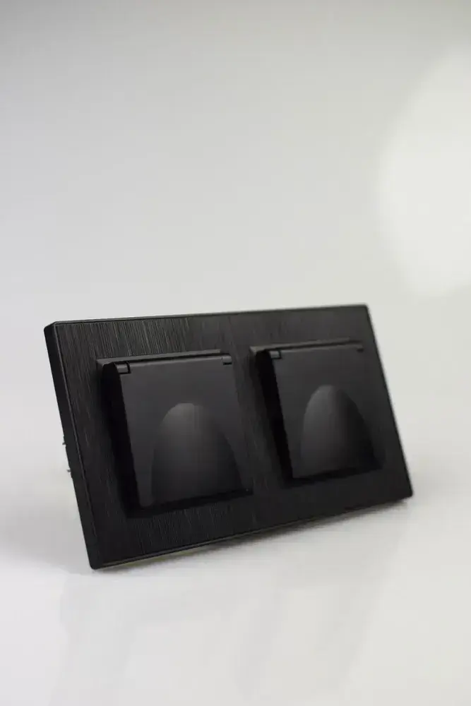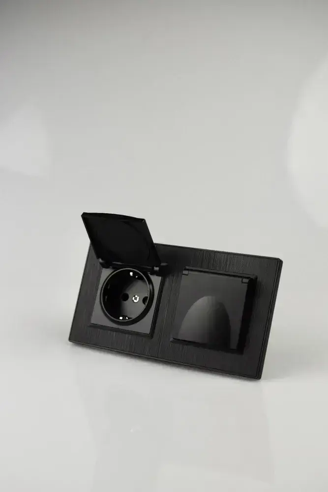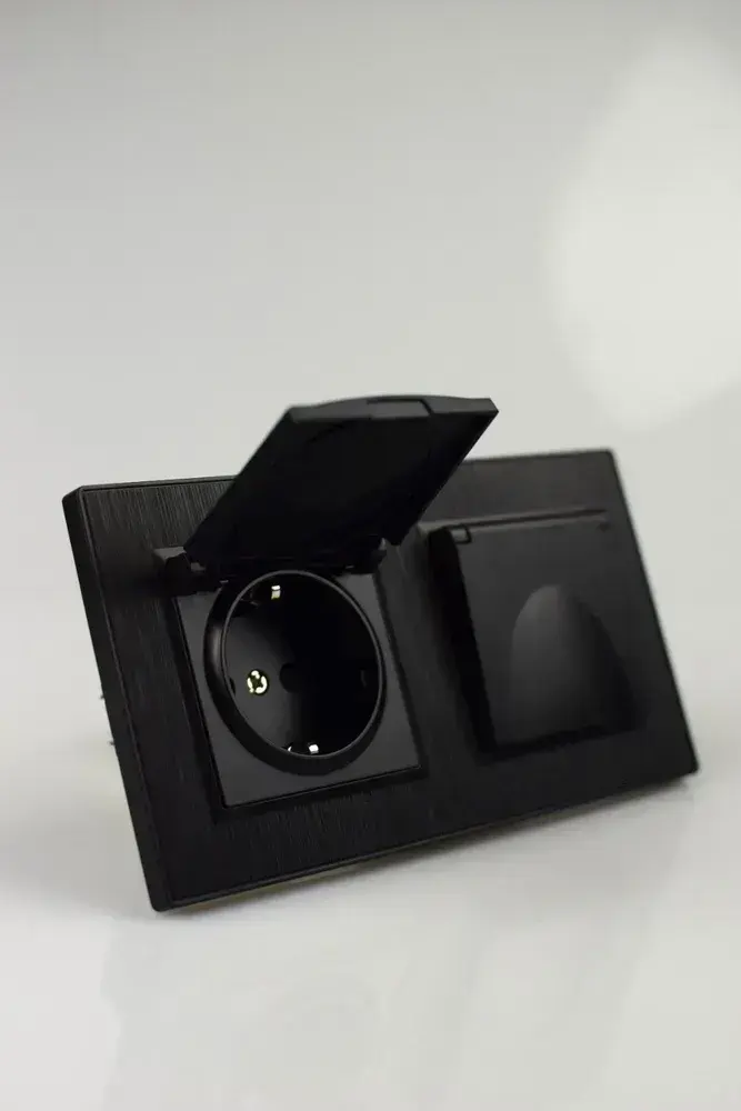 Розетка двойная с крышкой черная