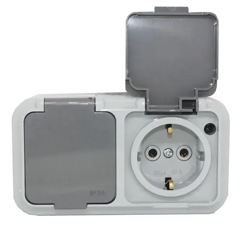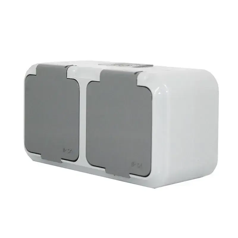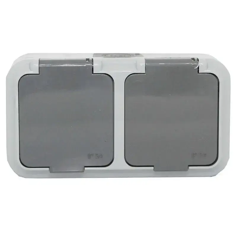 Розетка двойная с заземлением брызгозащищенная накладная IP54 BYLECTRICA ПРАЛЕСКА АКВА РА16-303(03)