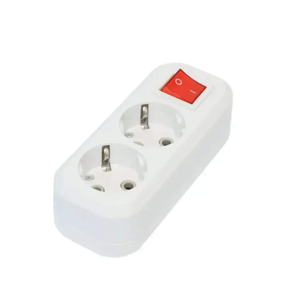 Розетка двухместная для удлинителя 2 гнезда с заземлением и выключателем