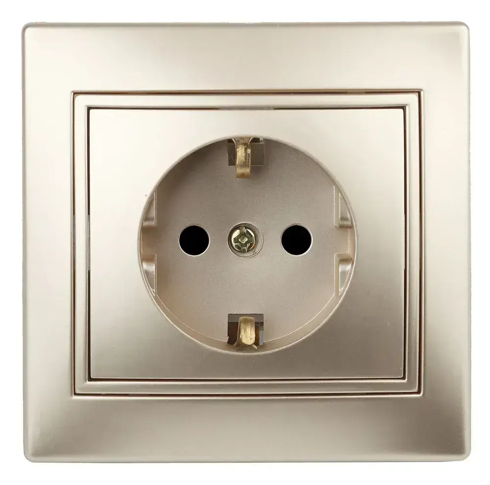 Розетка Intro Plano 1-202-04 с заземлением 2P+E Schuko 16А-250В IP20 скрытой установки шампань