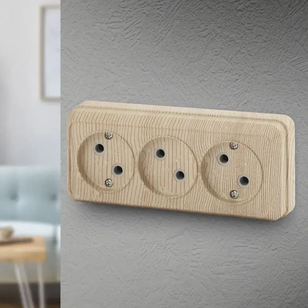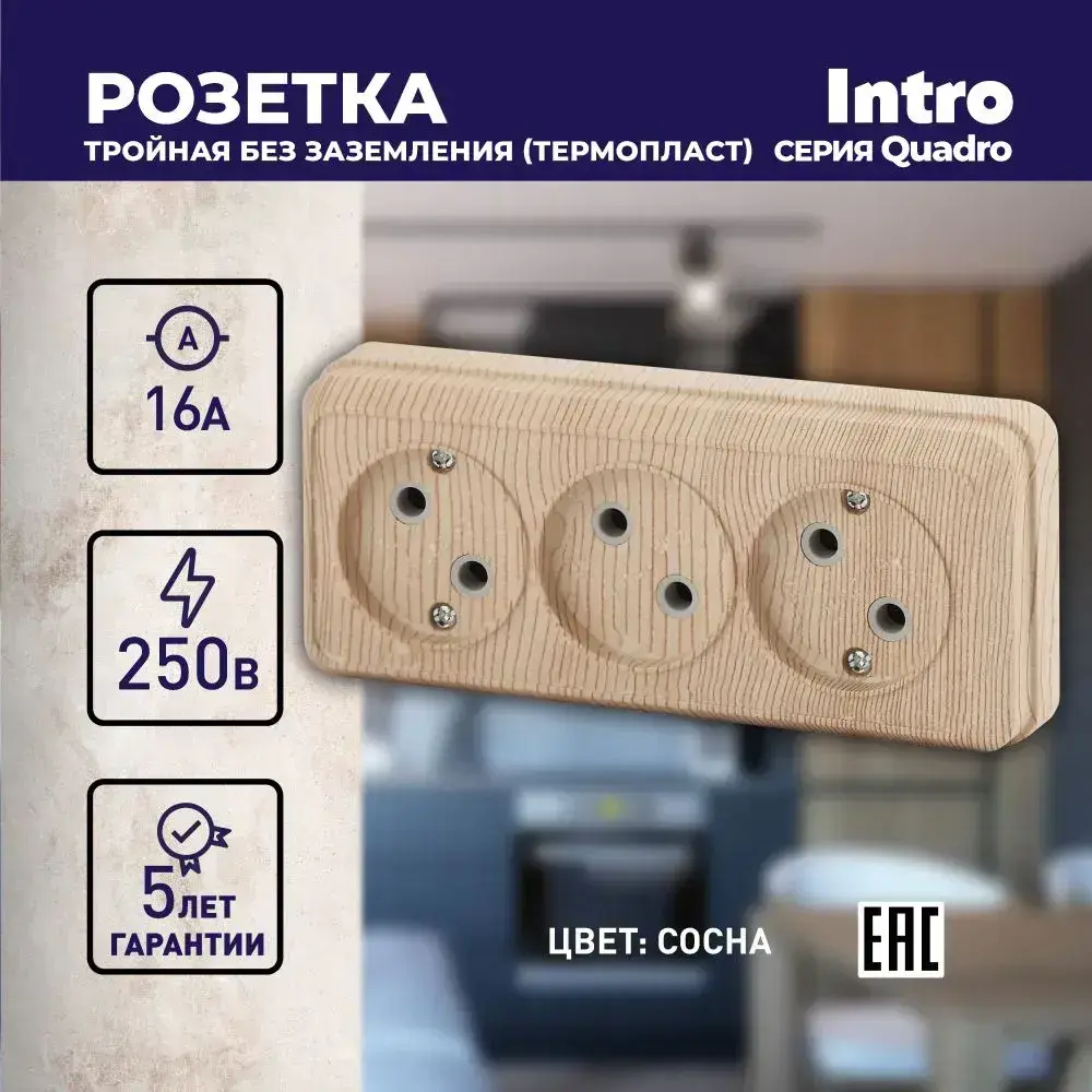 Розетка Intro Quadro 2-205-11 без заземления трехместная 3х2P 16А-250В IP20 открытой установки сосна