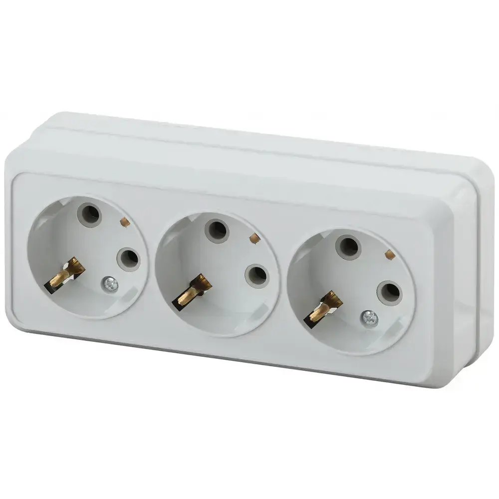 Розетка Intro Quadro 2-206-01 с заземлением трехместная 3х2P+E 16А-250В IP20 открытой установки белая