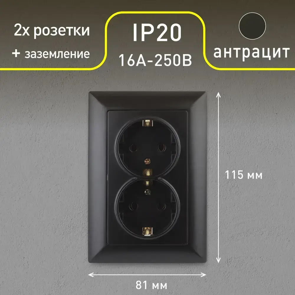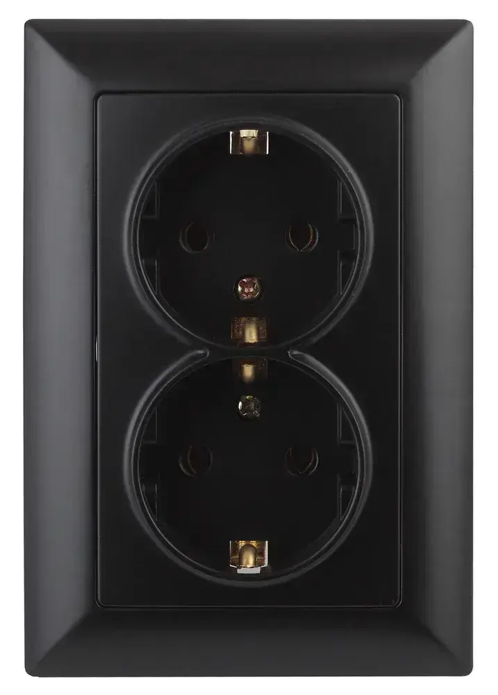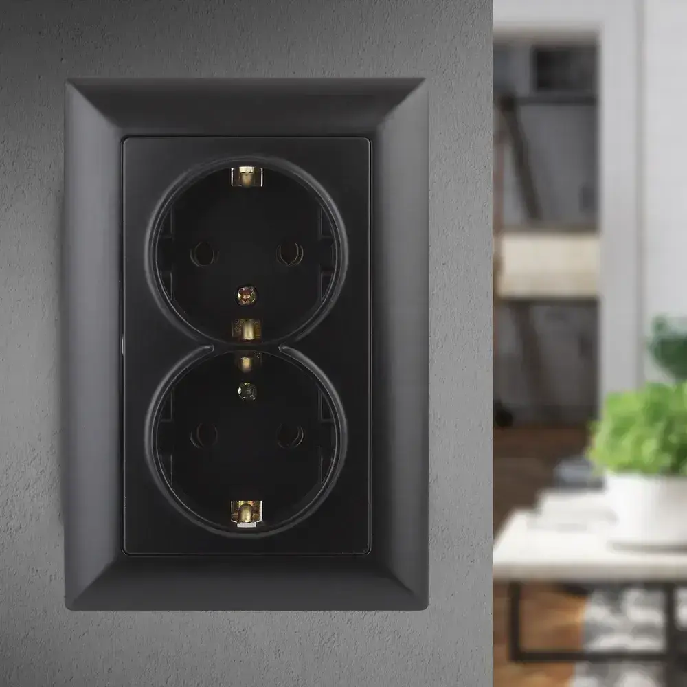 Розетка Intro Solo 4-205-05 с заземлением двойная 2X2P+E Schuko 16А-250В IP20 скрытой установки черный