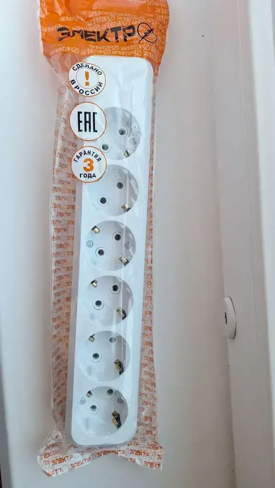 Розетка колодочная электрическая (колодка накладная для удлинителя) 6 гнёзд с заземлением,