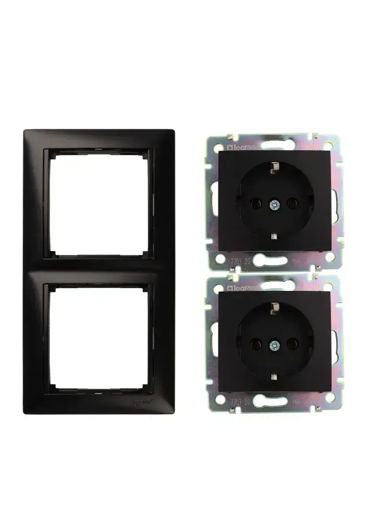 Розетка Legrand Vаlena цвет черный с заземлением (2шт) + рамка 2 пост 1шт
