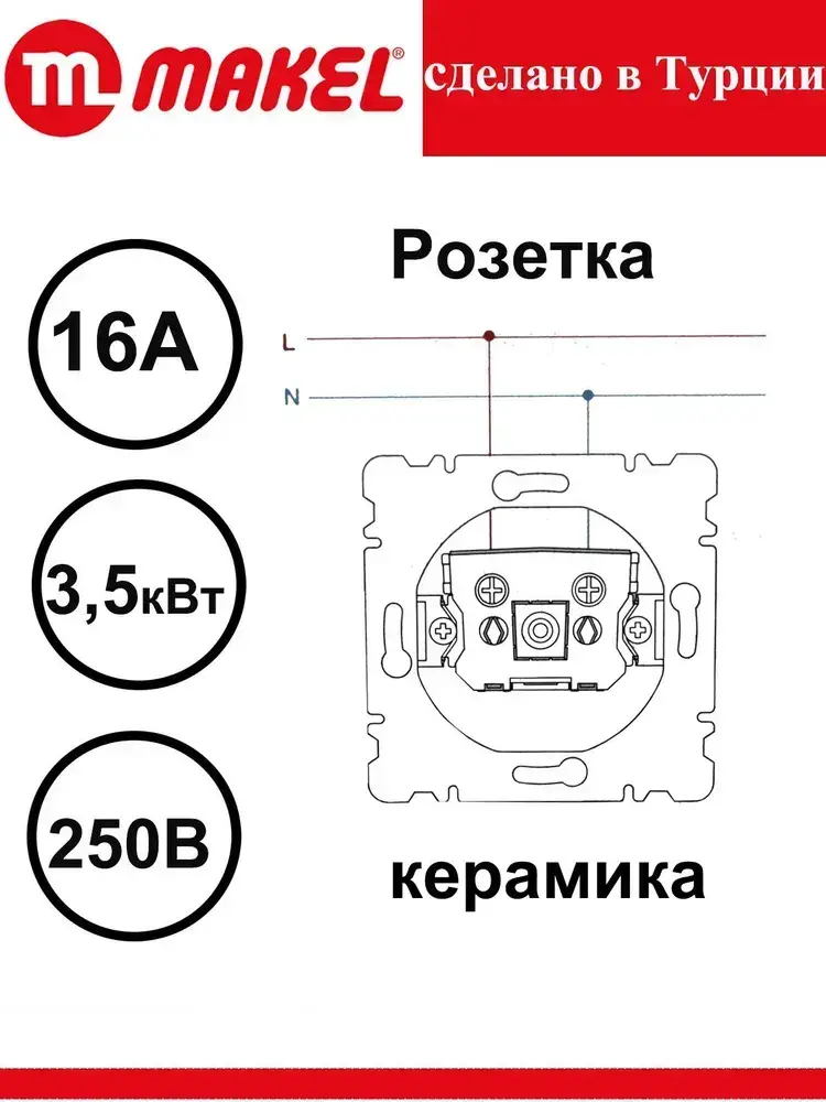 Розетка Makel Mimoza белая керамика 12002 скрытой проводки