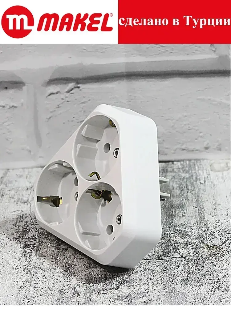 Розетка MAKEL трехместная с заземлением скрытой проводки 16A в одно гнездо