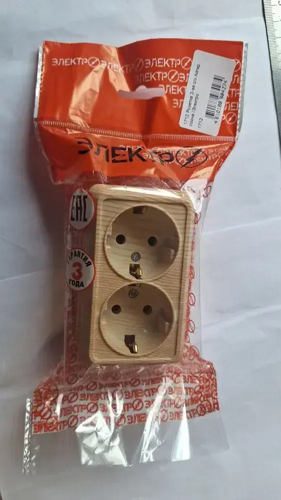 Розетка накладная двойная с заземлением Электро, розетка наружная сосна для открытой установки, 16А, 250В