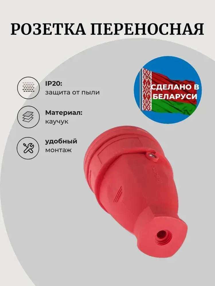 Розетка переносная 16 А, 250 В, IP20, с з/к, каучук