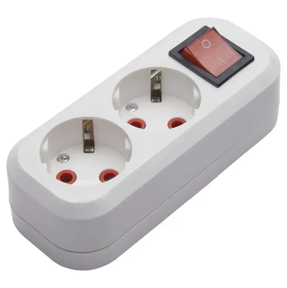 Розетка переносная разборная 2-местная с заземлением STEKKER, PST16-211-20, с выключателем, 250В, 16A, IP20, белый, 39013