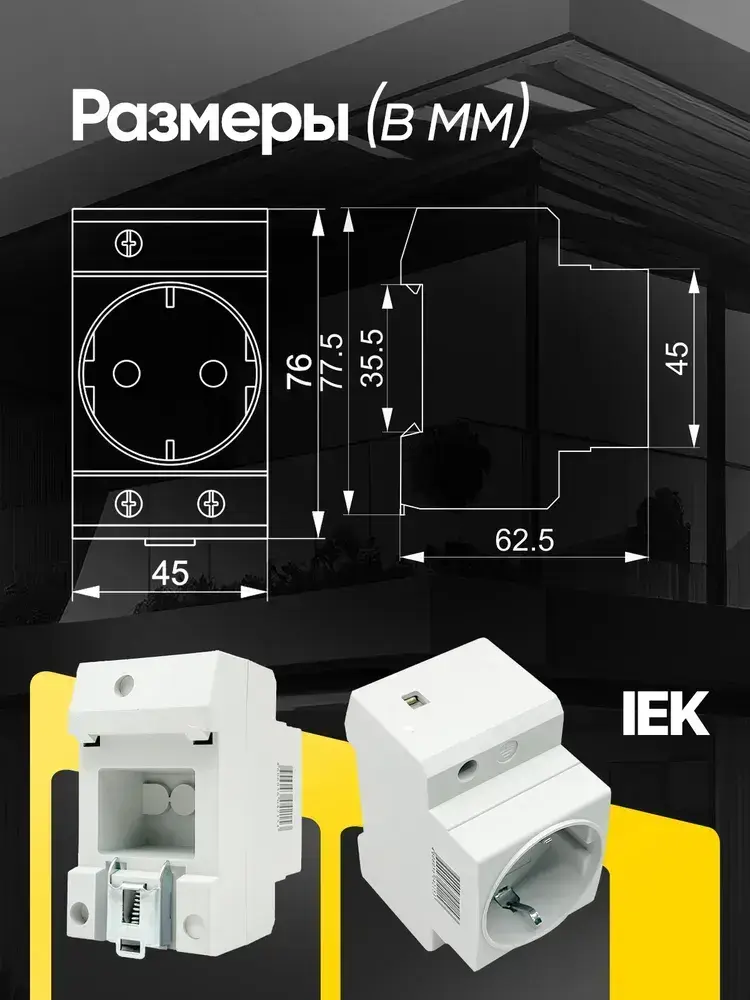 Розетка силовая на DIN-рейку IEK РАр10-3-ОП с заземлением MRD10-16