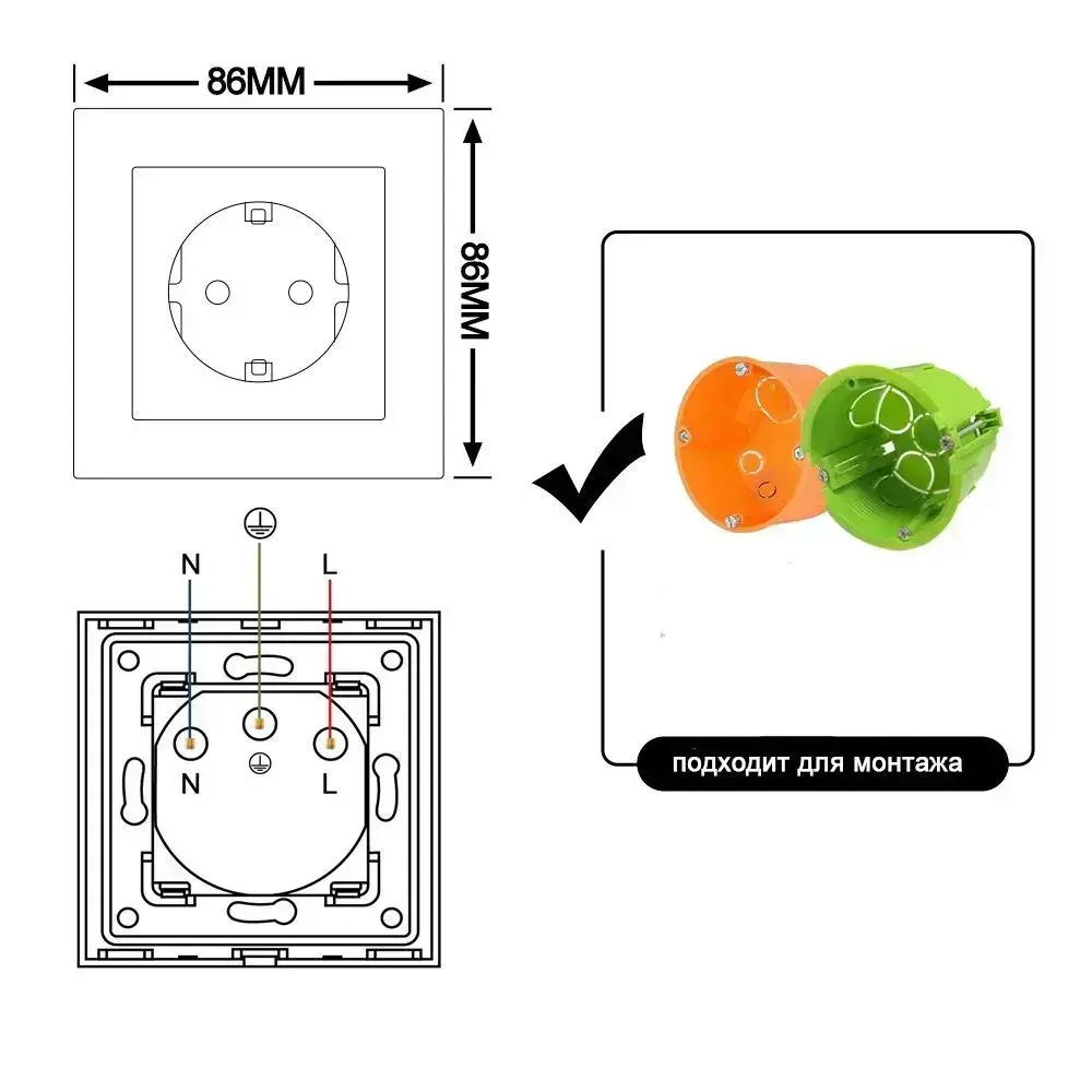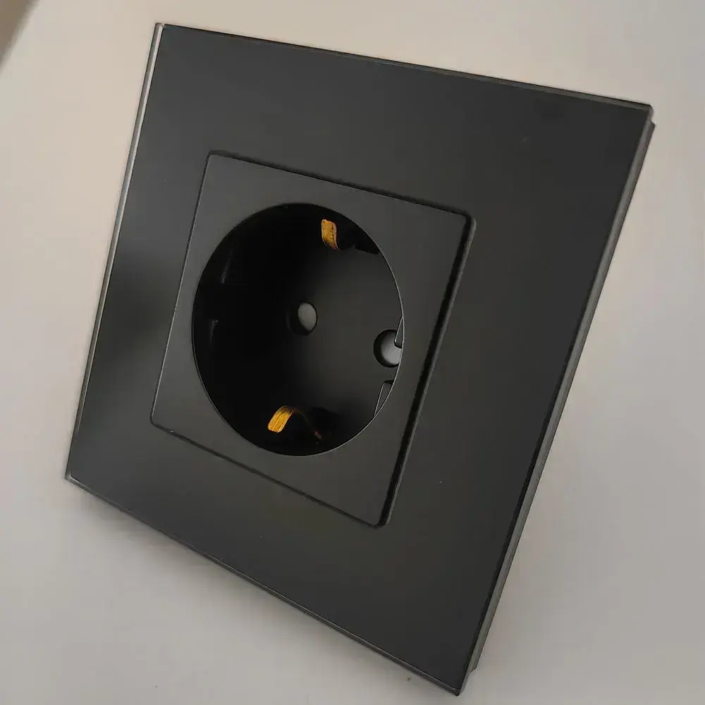Розетка стеклянная одинарная с рамкой черная