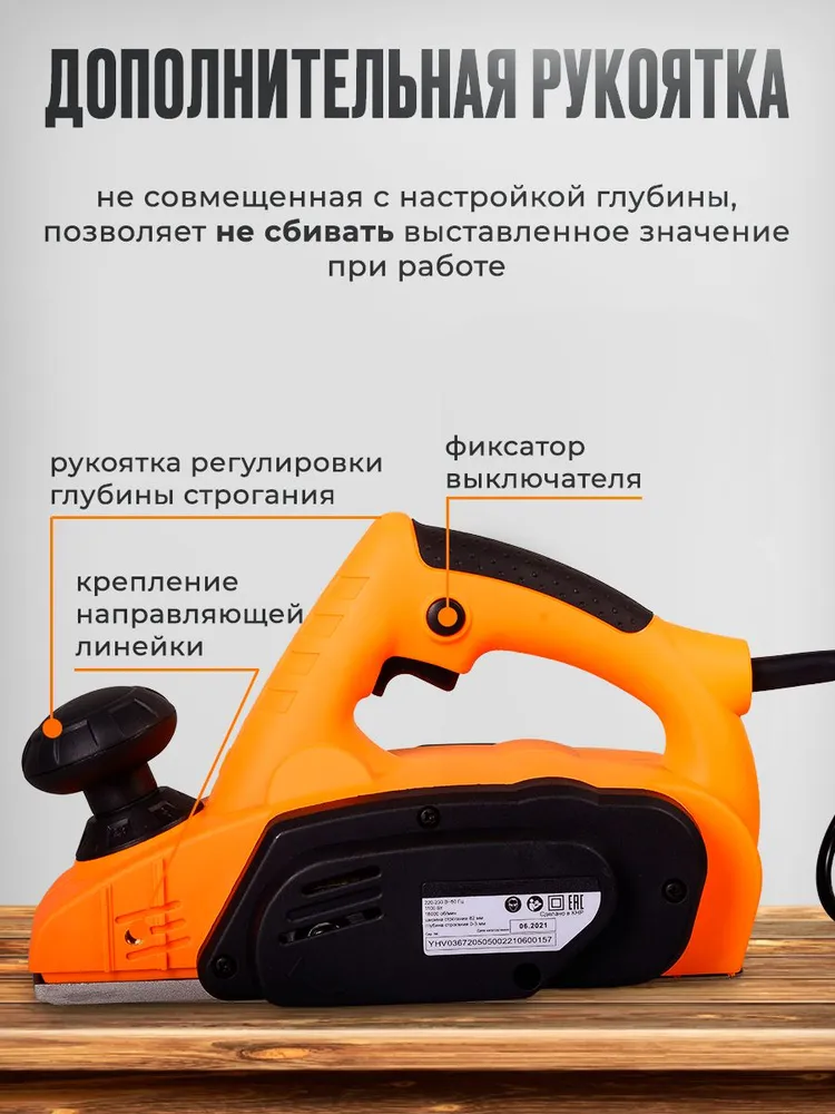 Рубанок электрический Вихрь Р-82/800 (800 Вт, 16000 об/мин, глубина - 2 мм, ширина - 82 мм, 2.6 кг)/ Электро рубанок