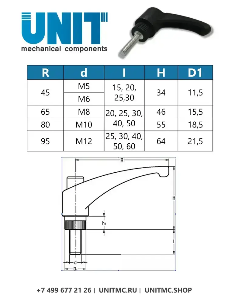 Ручка зажимная UnitMC пластиковая ВМ5х20 100109 ВМ5х20 pa66