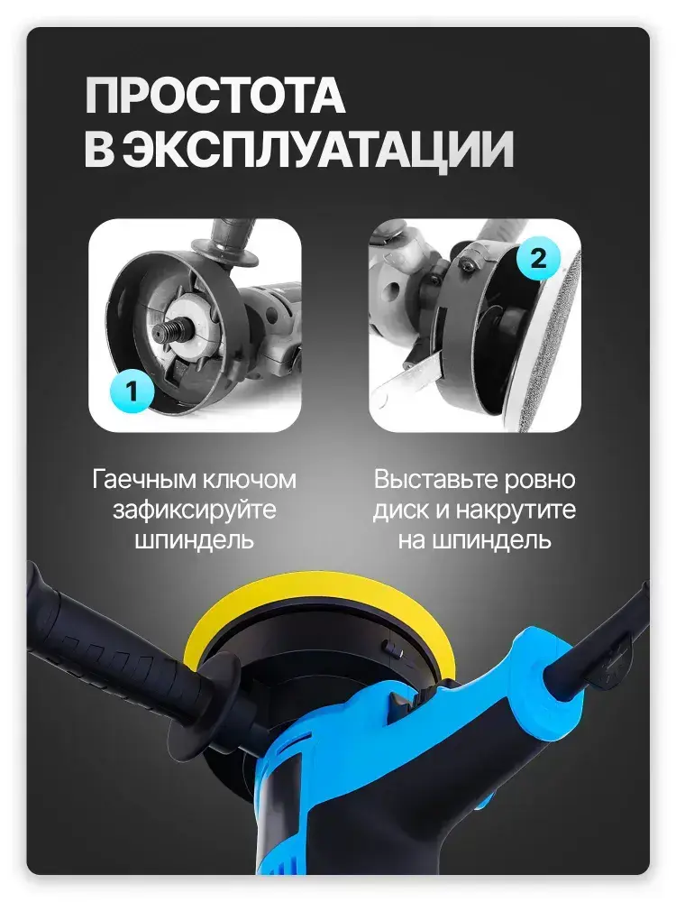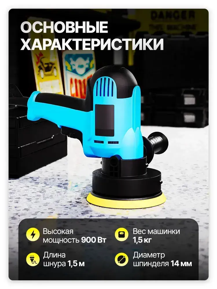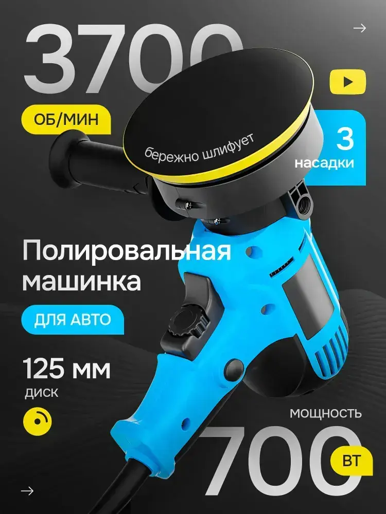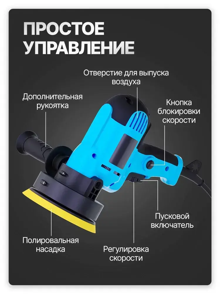 Ручная полировальная машинка электрическая, сетевая с регулируемой скоростью / Шлифовальная машинка для полировки и детейлинга кузова WPM1-14