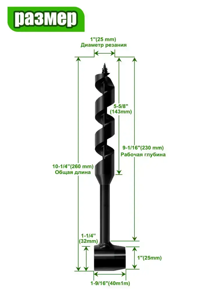 Ручной шнековый ключ ручной работы по дереву Сверло 25*260 мм Наружные прочные инструменты для выживания