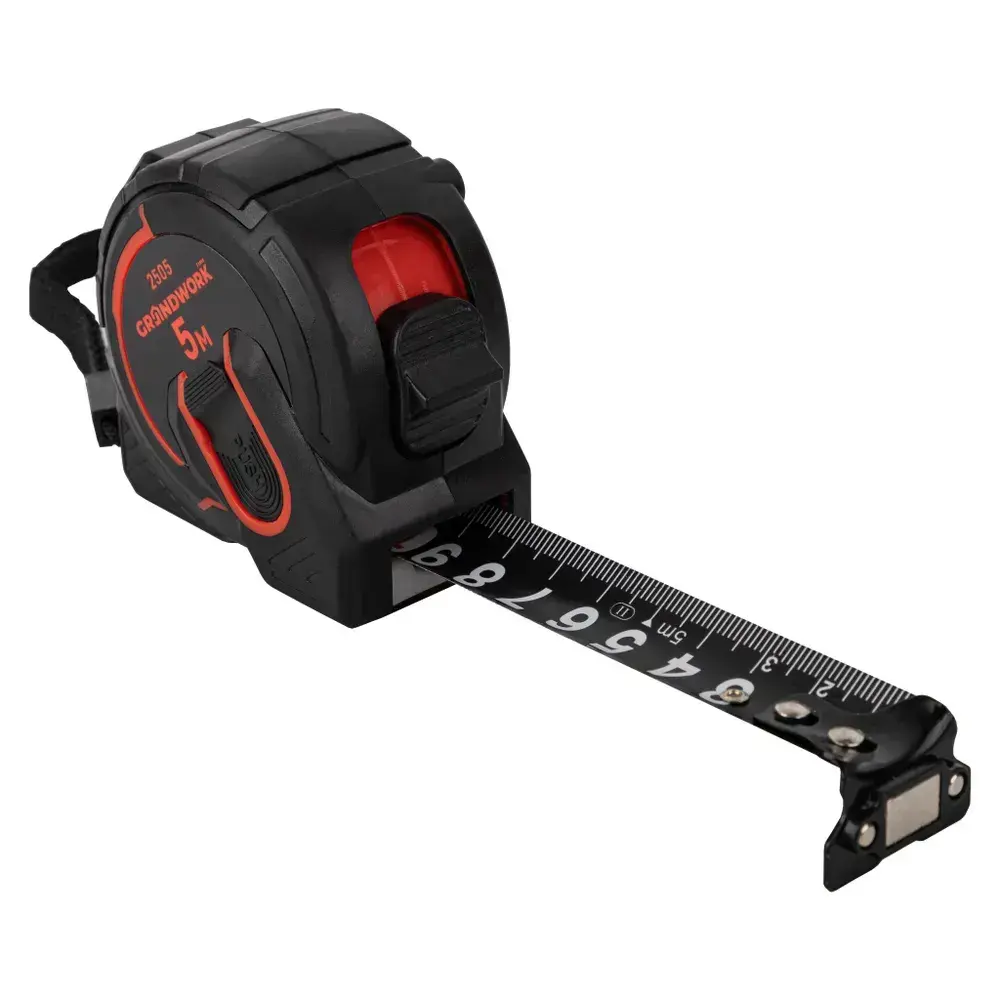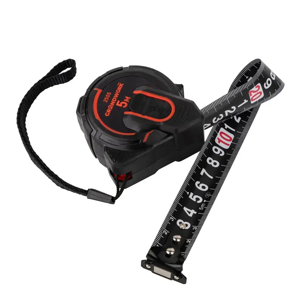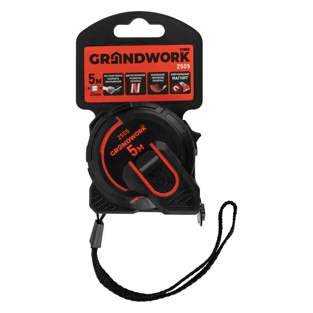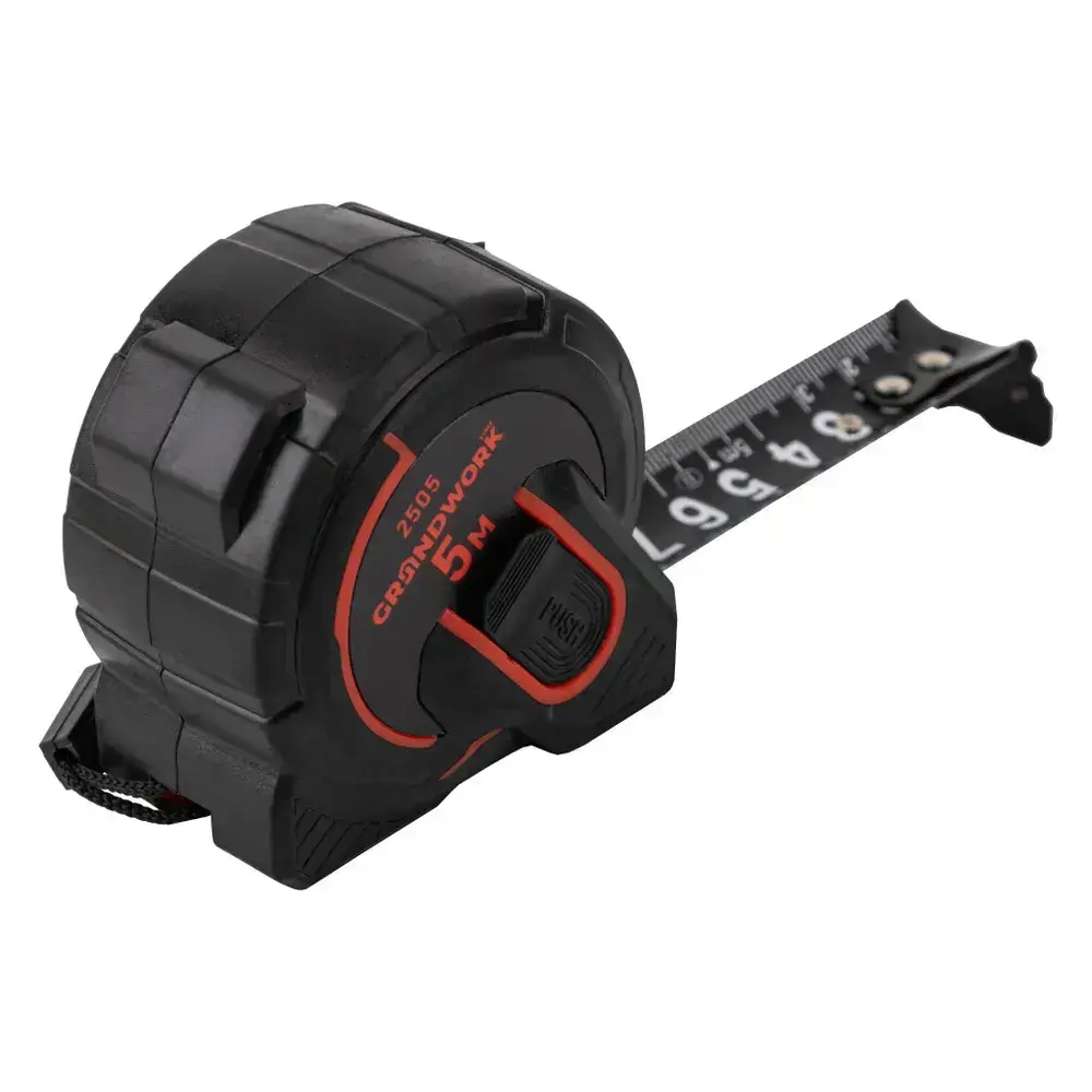 Рулетка 5 метров с черным защитным полотном, большими цифрами GRANDWORK 2505