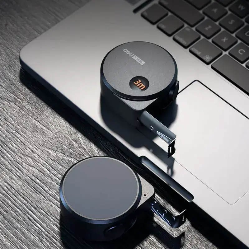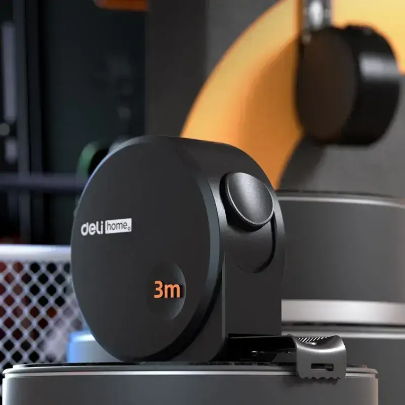 Рулетка "Home Series Black" Deli HT8316 3мх16мм (Эксклюзивный дизайн, корпус из софттач пластика, противоскользящая резиновая вставка, подарочная упаковка)