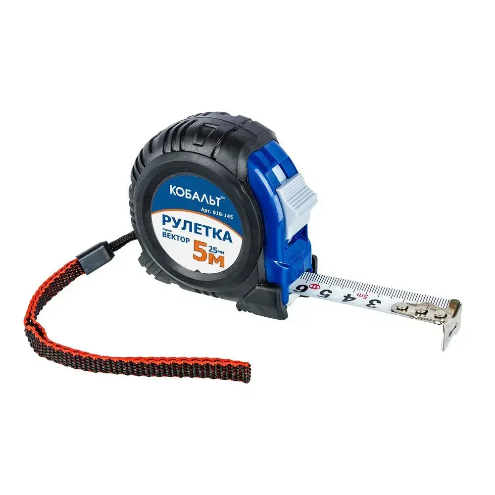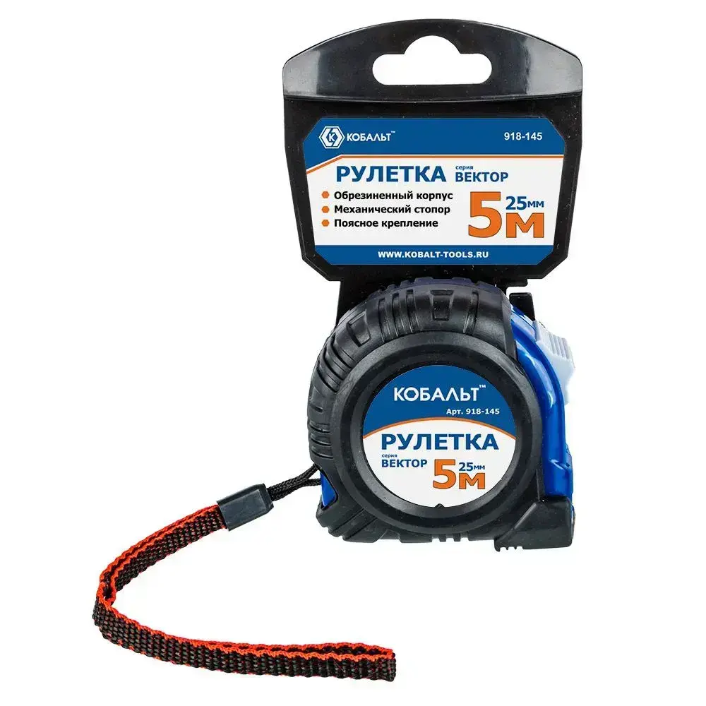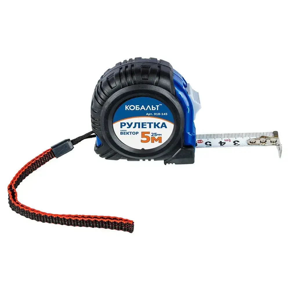 Рулетка КОБАЛЬТ Вектор 5м x 25мм обрезиненный корпус .