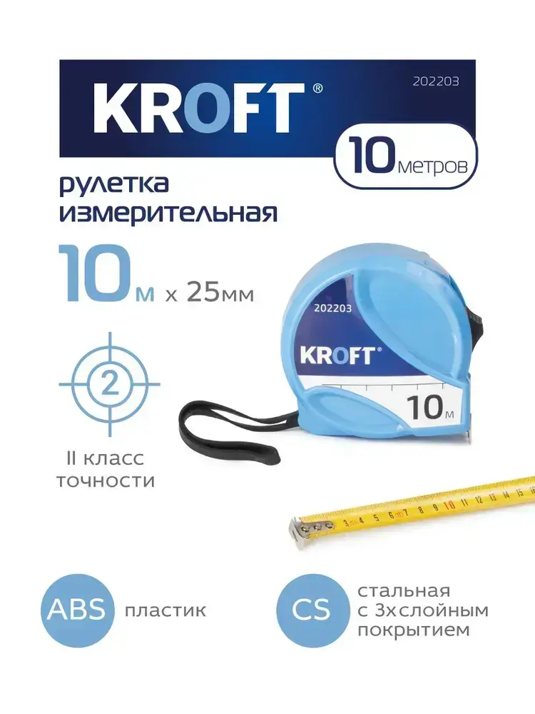 Рулетка строительная 10 м х 25 мм KROFT