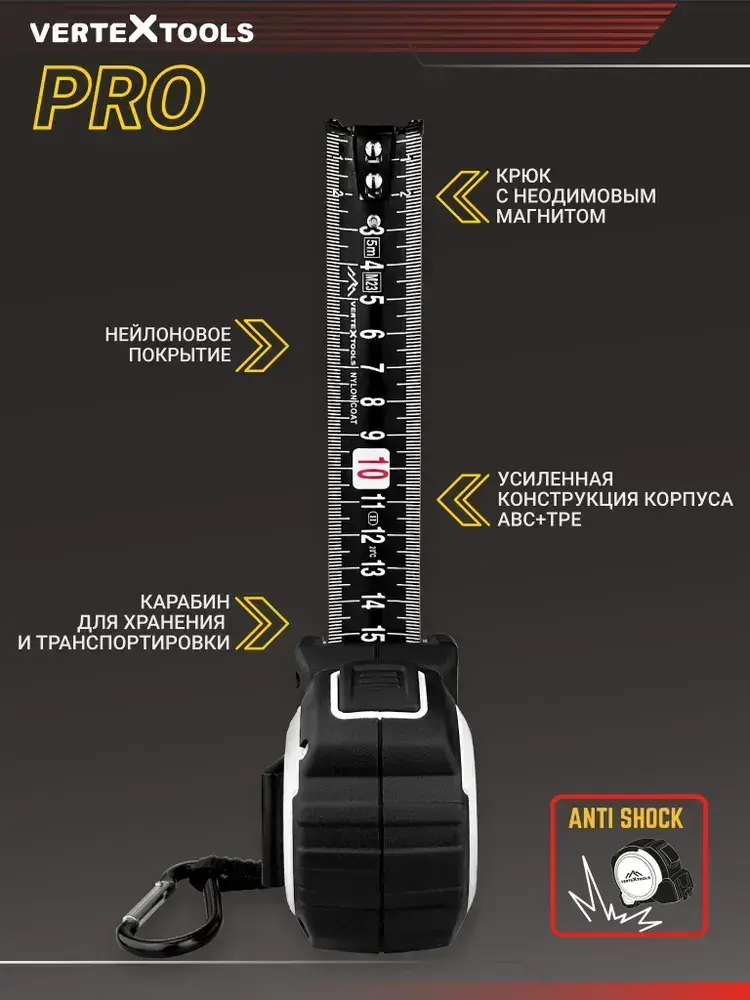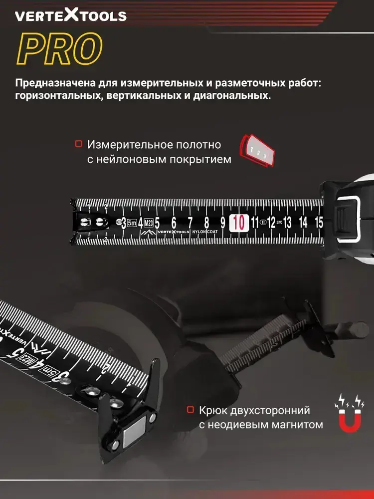 Рулетка строительная 5м магнитная PROFI BLACK