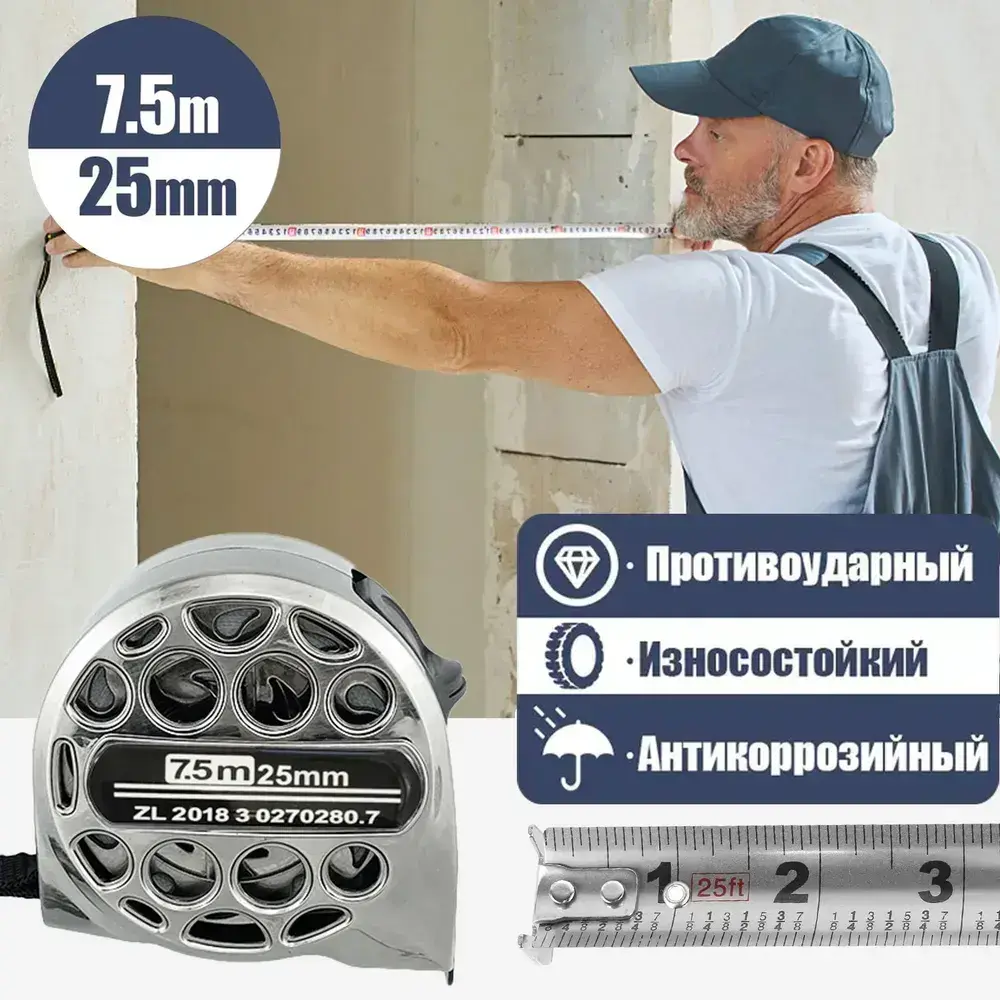 Рулетка строительная 7.5м, рулетки строительные, измерительные инструменты, 7.5м x 25мм