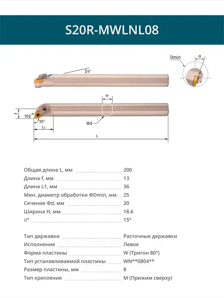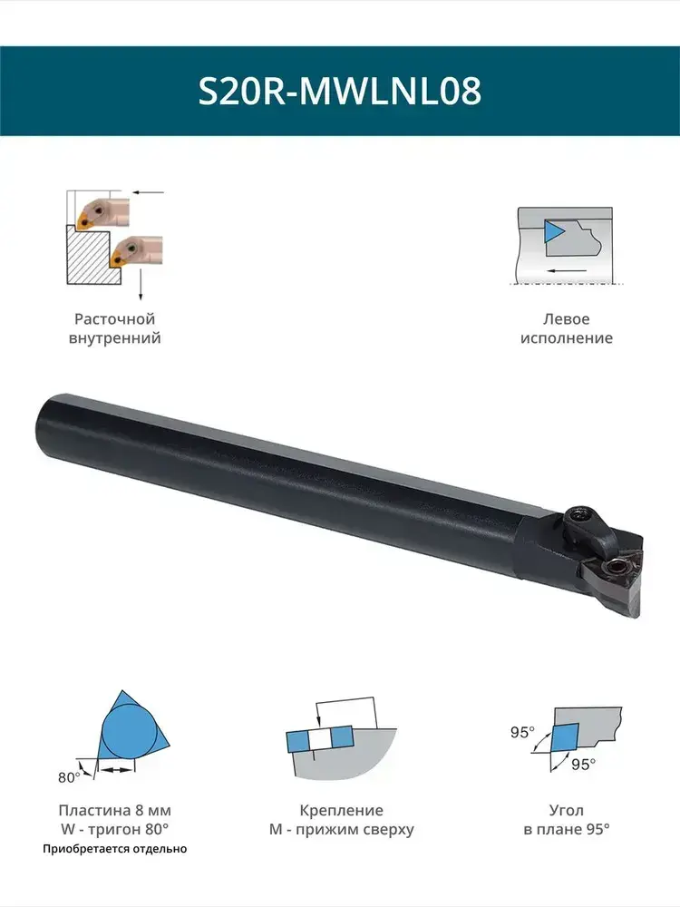 S20R-MWLNL08 резец расточной внутренний 20 мм левый / пластина W - Тригон 80 градусов