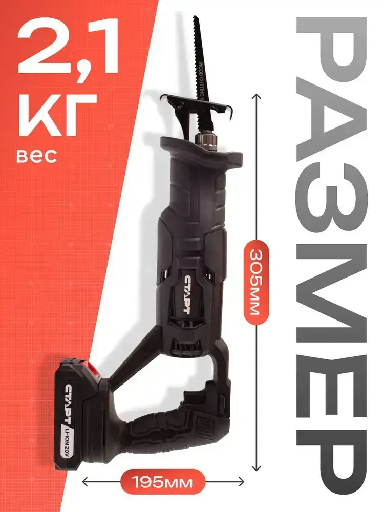 Сабельная пила СТАРТ аккумуляторная, 20В, 3000 об/мин
