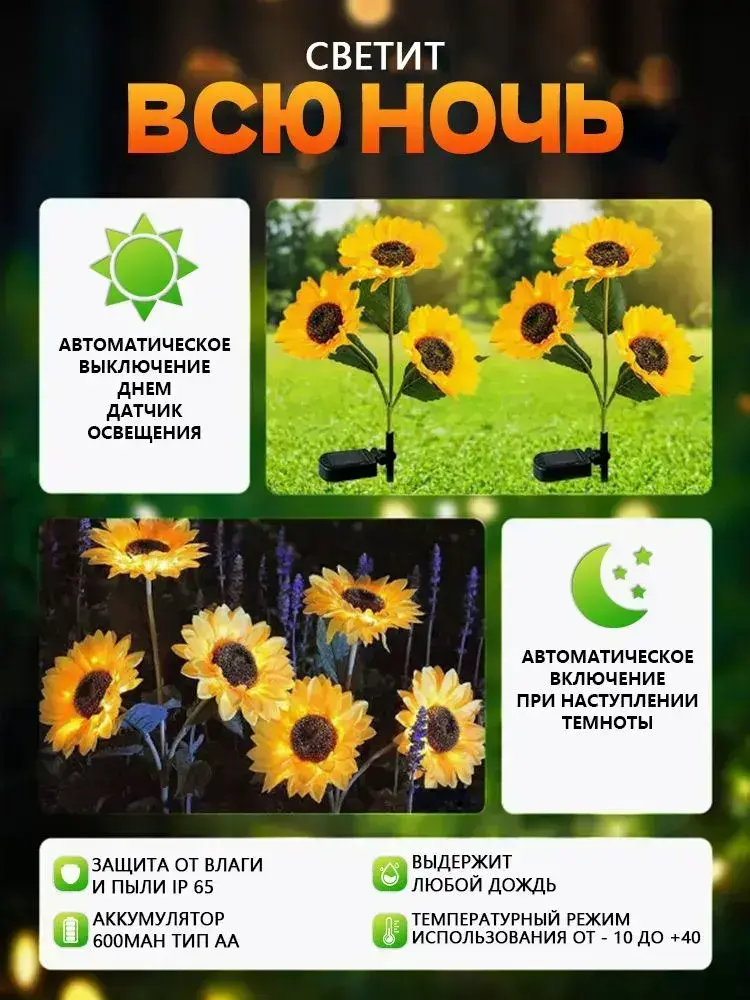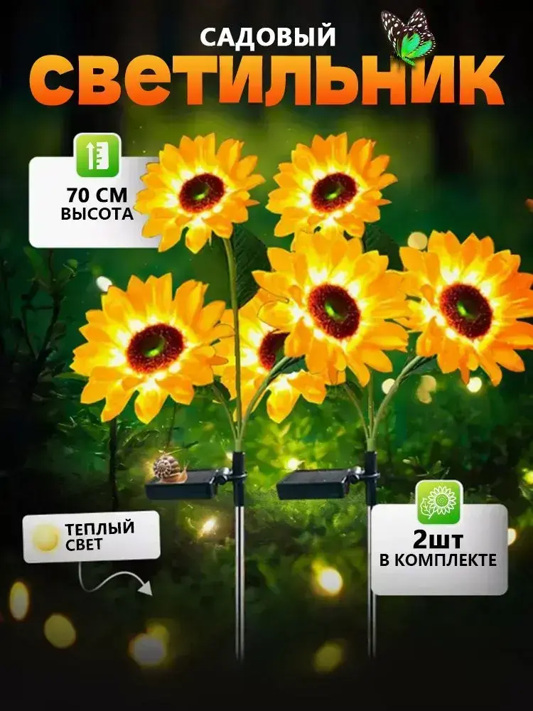 садовые светильники на солнечных батареях 2 шт/подсолнух светильник уличный