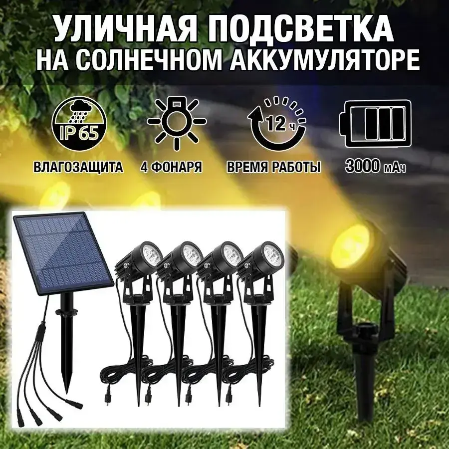 Садовый светильник на солнечном аккумуляторе / подсветка для сада (теплый свет)