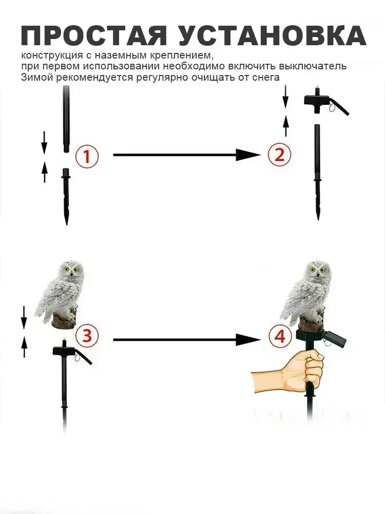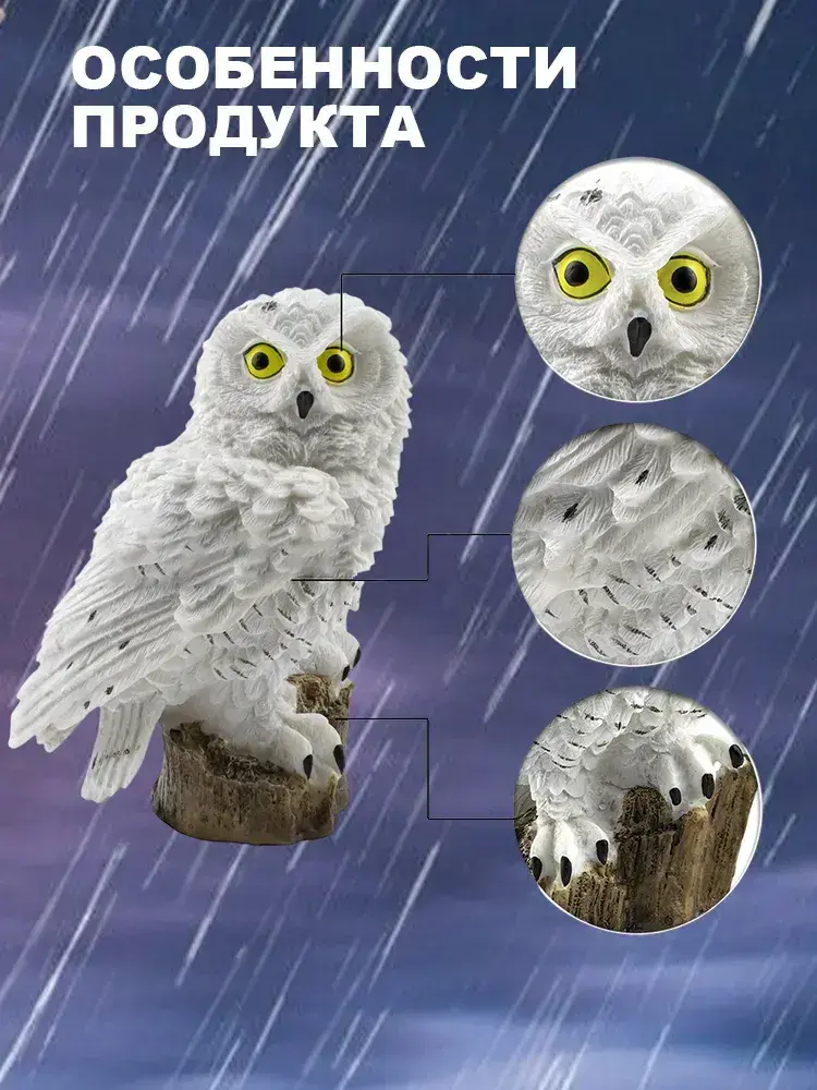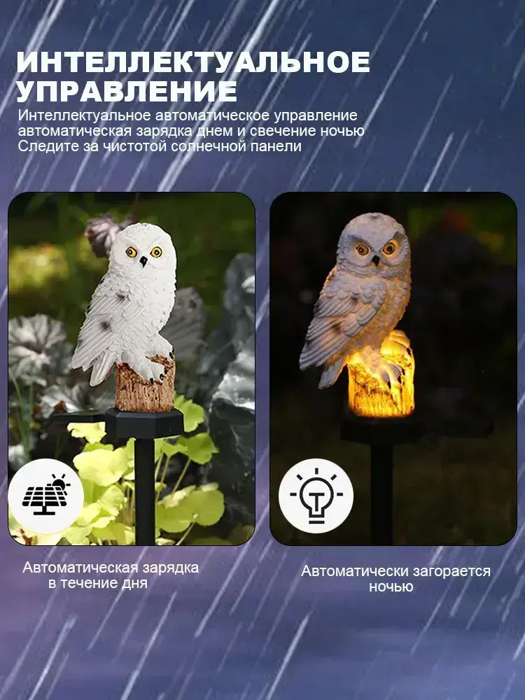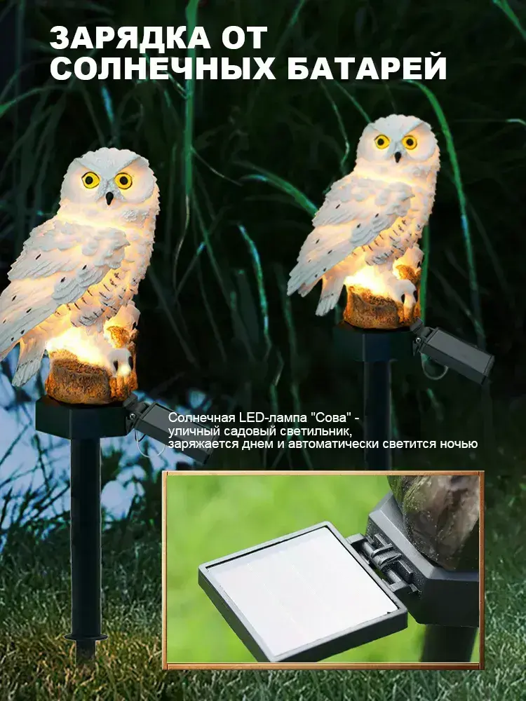 Садовый светильник на солнечной батарее "Сова", белый, уличный фонарь для двора