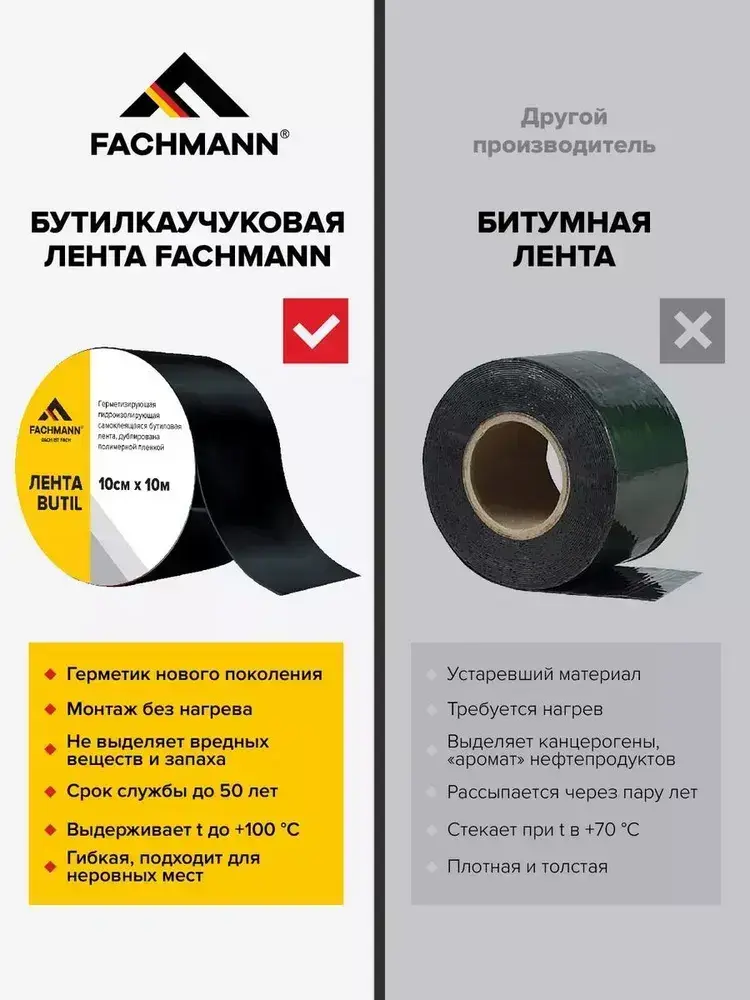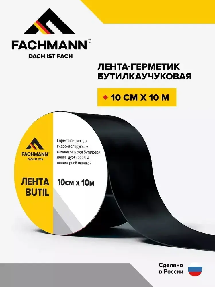 Самоклеящаяся бутилкаучуковая битумная лента герметик FACHMANN Butil 10 см. х 10 м.