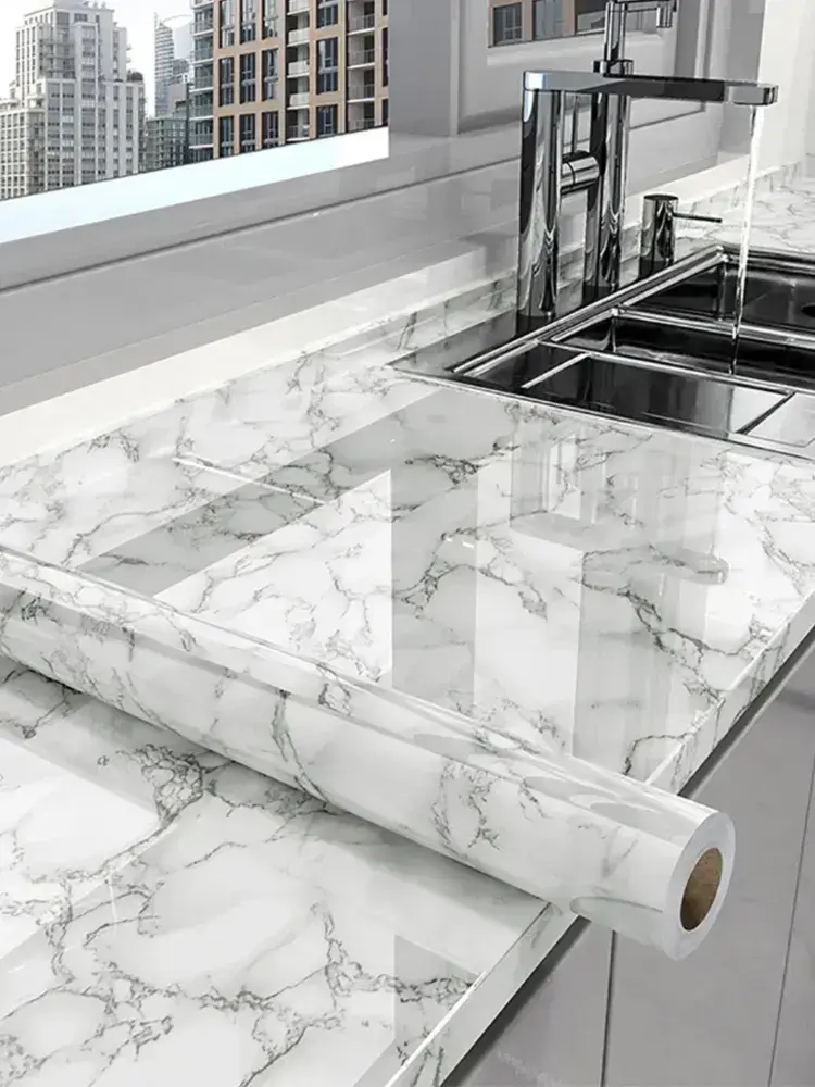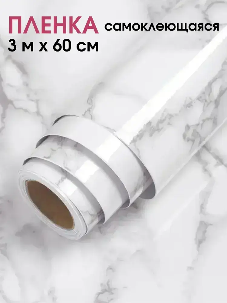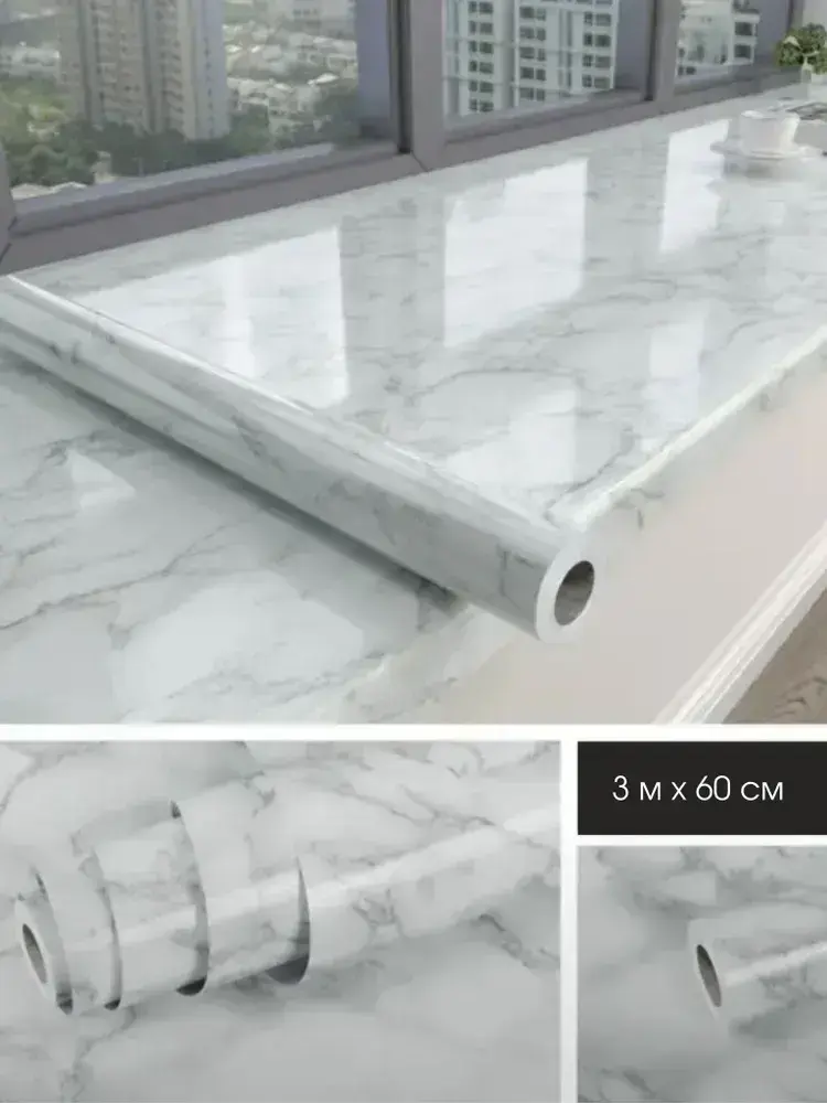 Самоклеящаяся защитная пленка для кухни и мебели /3м на 60см/ мраморная белая