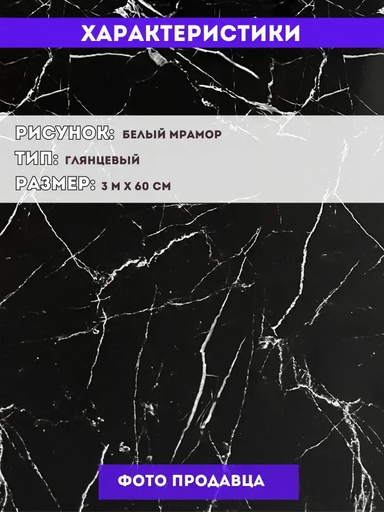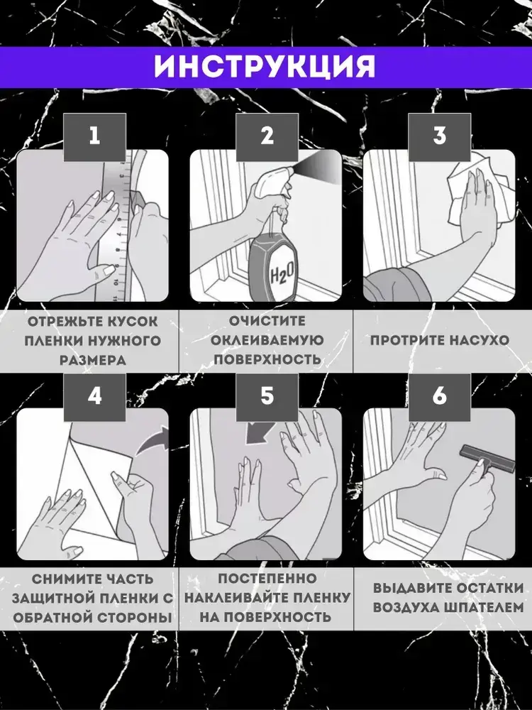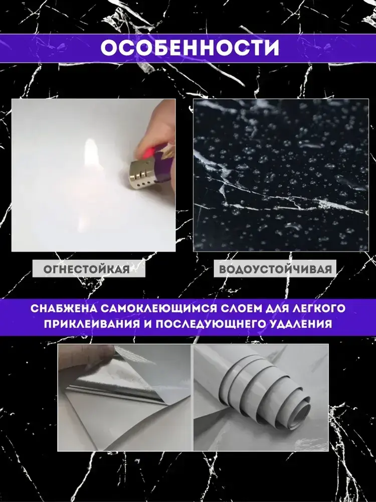Самоклеящаяся защитная пленка для кухни и мебели /3м на 60см/ мраморная черная