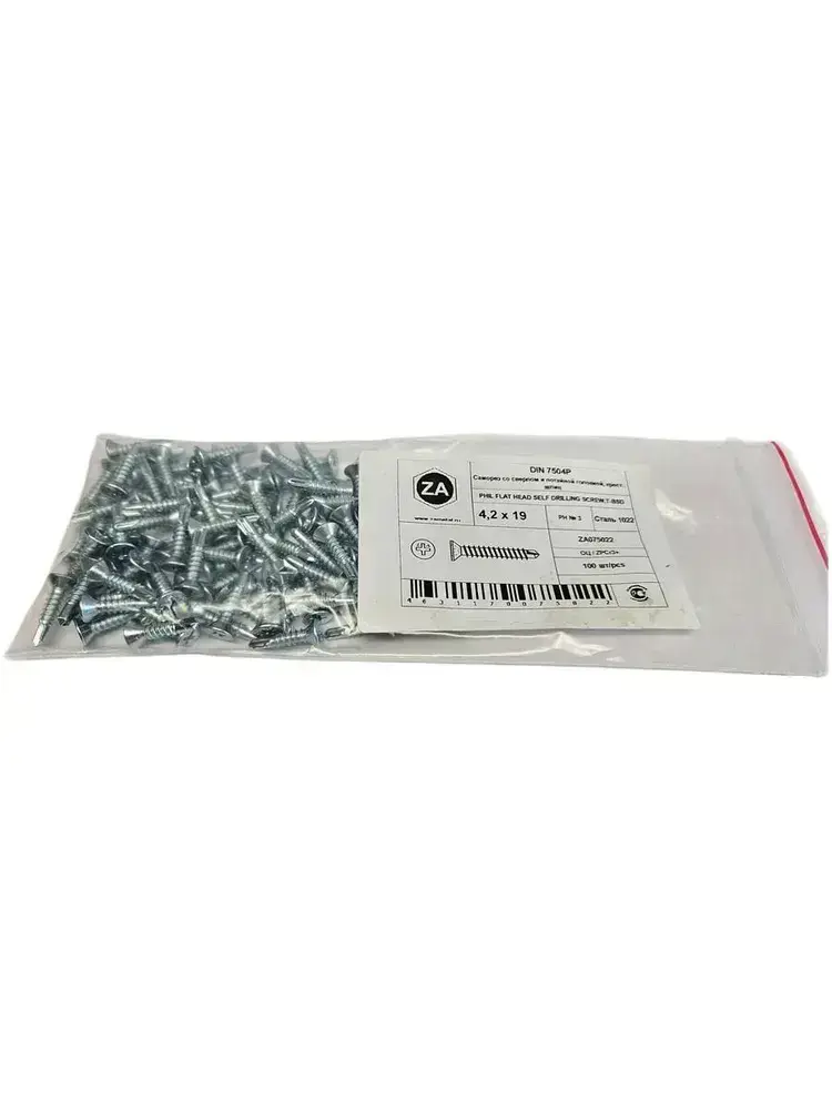 Саморез 4,2 х 19 со сверлом и потайной головкой, DIN7504Р, оц.( уп. 100 шт)