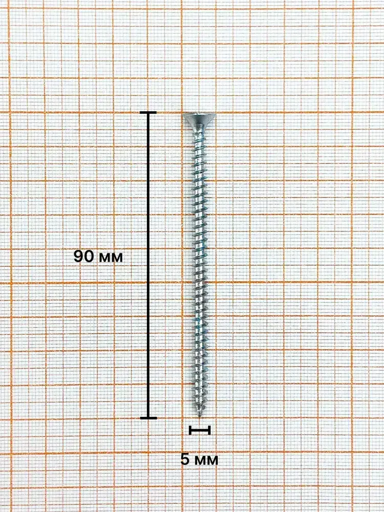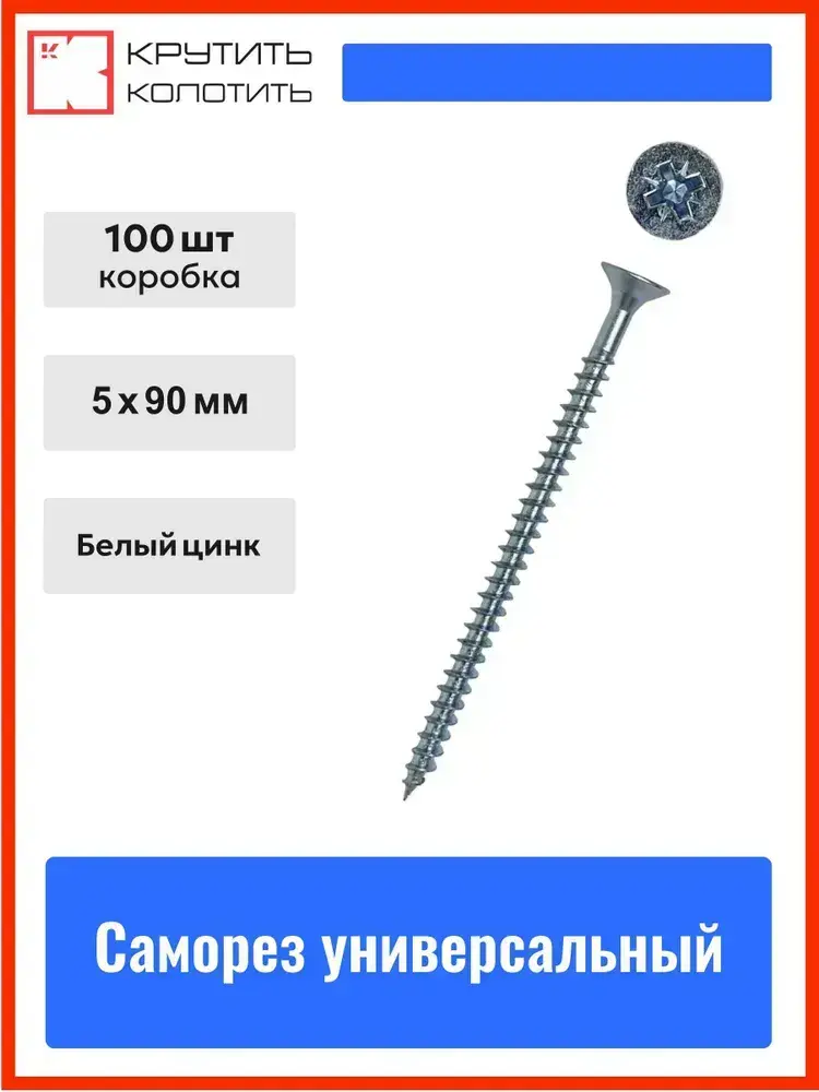 Саморез 5,0х90 мм универсальный, белый цинк (уп. 100 шт) коробка