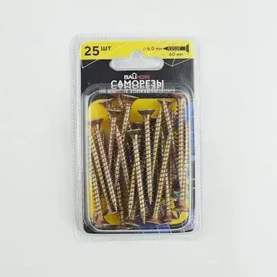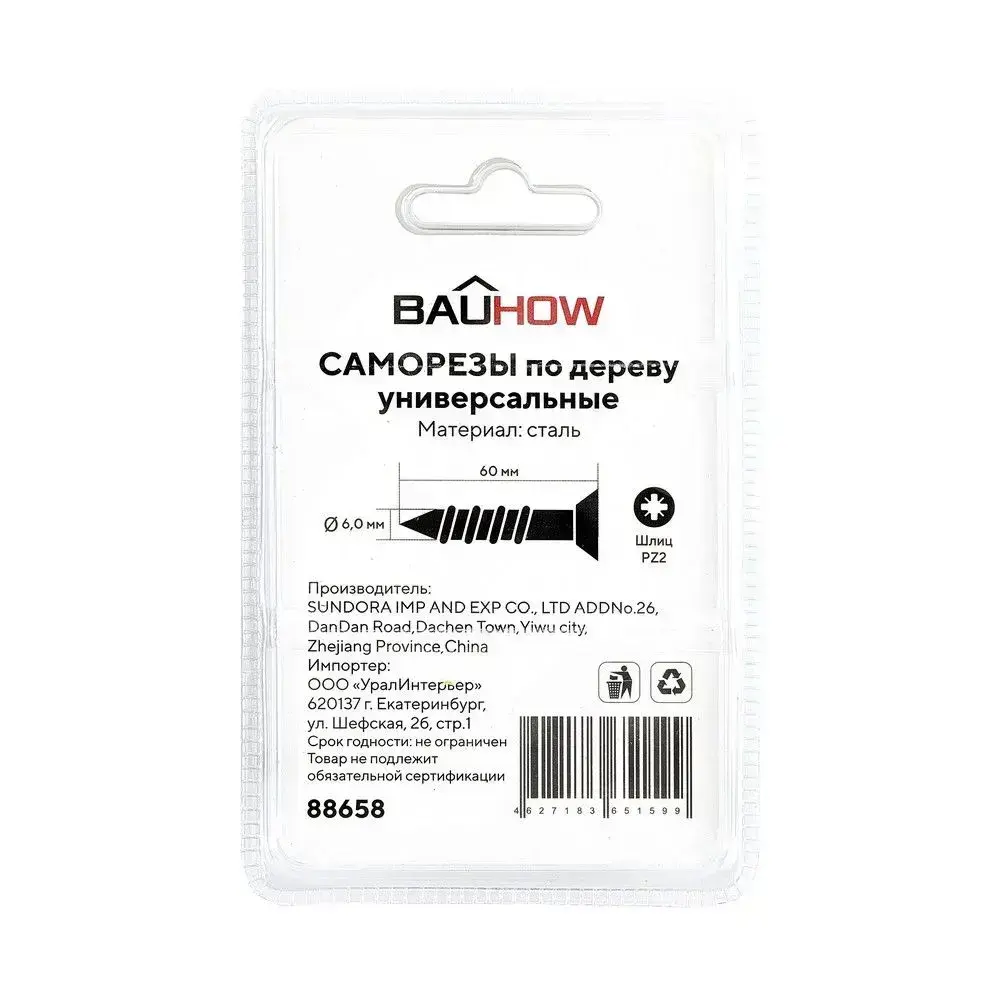 Саморез 6,0x60 универсальный по дереву BAUHOW, 25шт в блистере