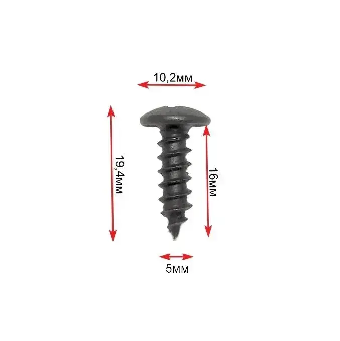 Саморез для автомобилей ВАЗ (OEM: 21140-5325388-008). Черный. 5х16 мм. Крепеж для автомобилей. (Упаковка20шт)