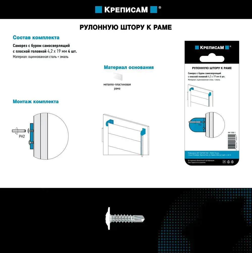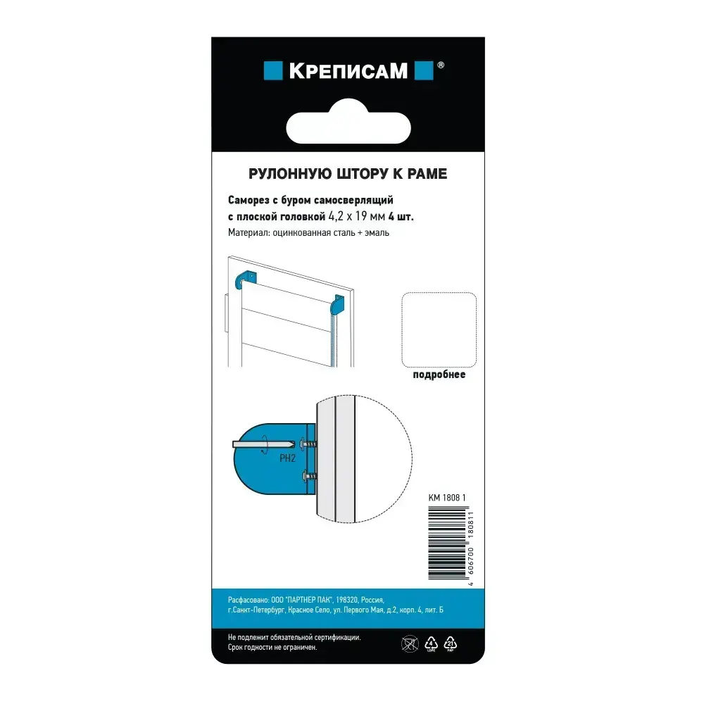 Саморез для металла 4,2x19мм цвет белый ЕВРОПАРТНЕР (4 шт.)