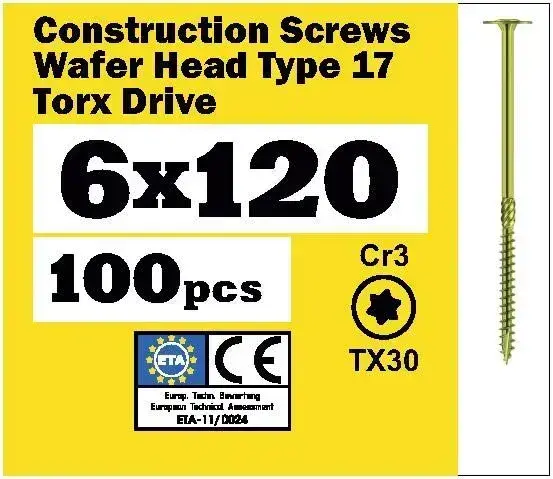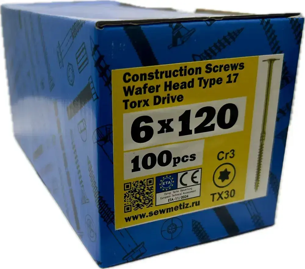 Саморез конструкционный 6х120 прессшайба, TX30, SEWMETIZ (100 шт)