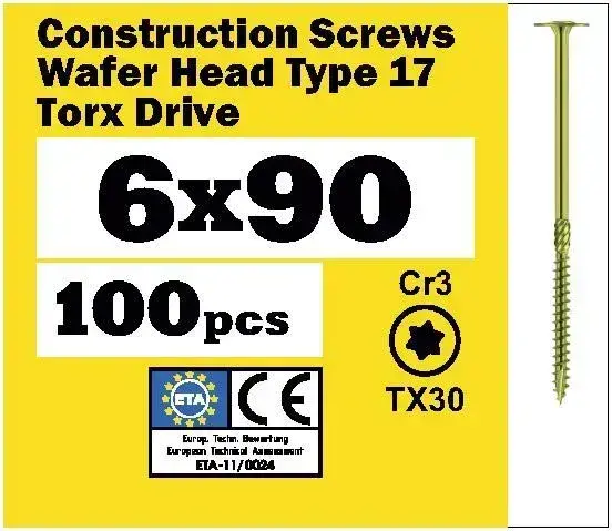 Саморез конструкционный 6х90 прессшайба, TX30, SEWMETIZ (100 шт)