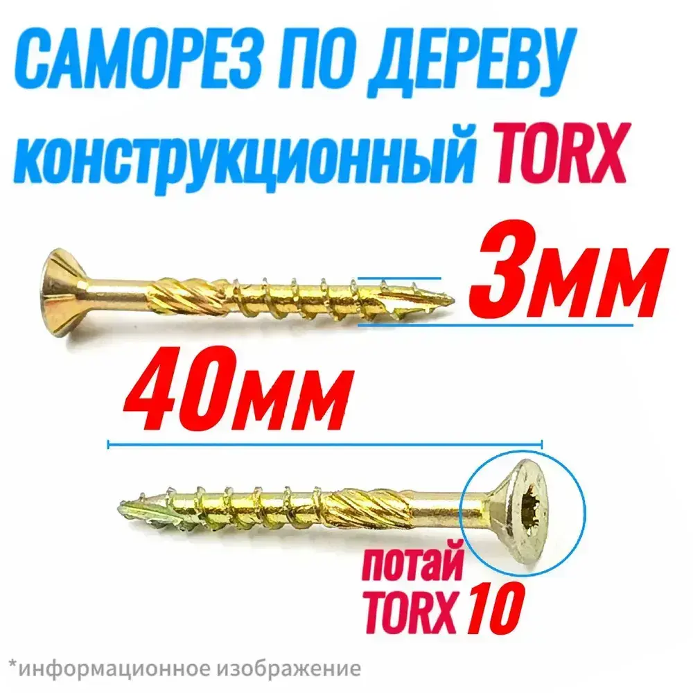 Саморез конструкционный по дереву 3 х 40 потай Torx 10 (250шт)