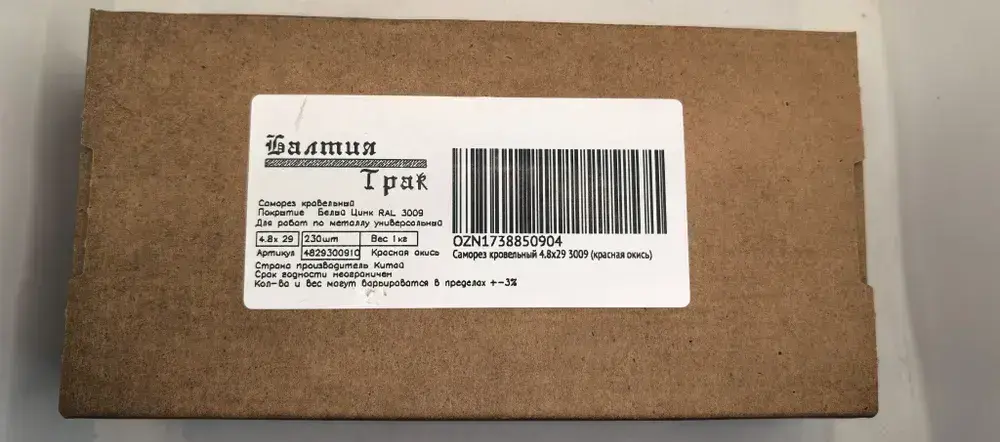 Саморез кровельный 4.8х29 3009 (красная окись) 1кг
