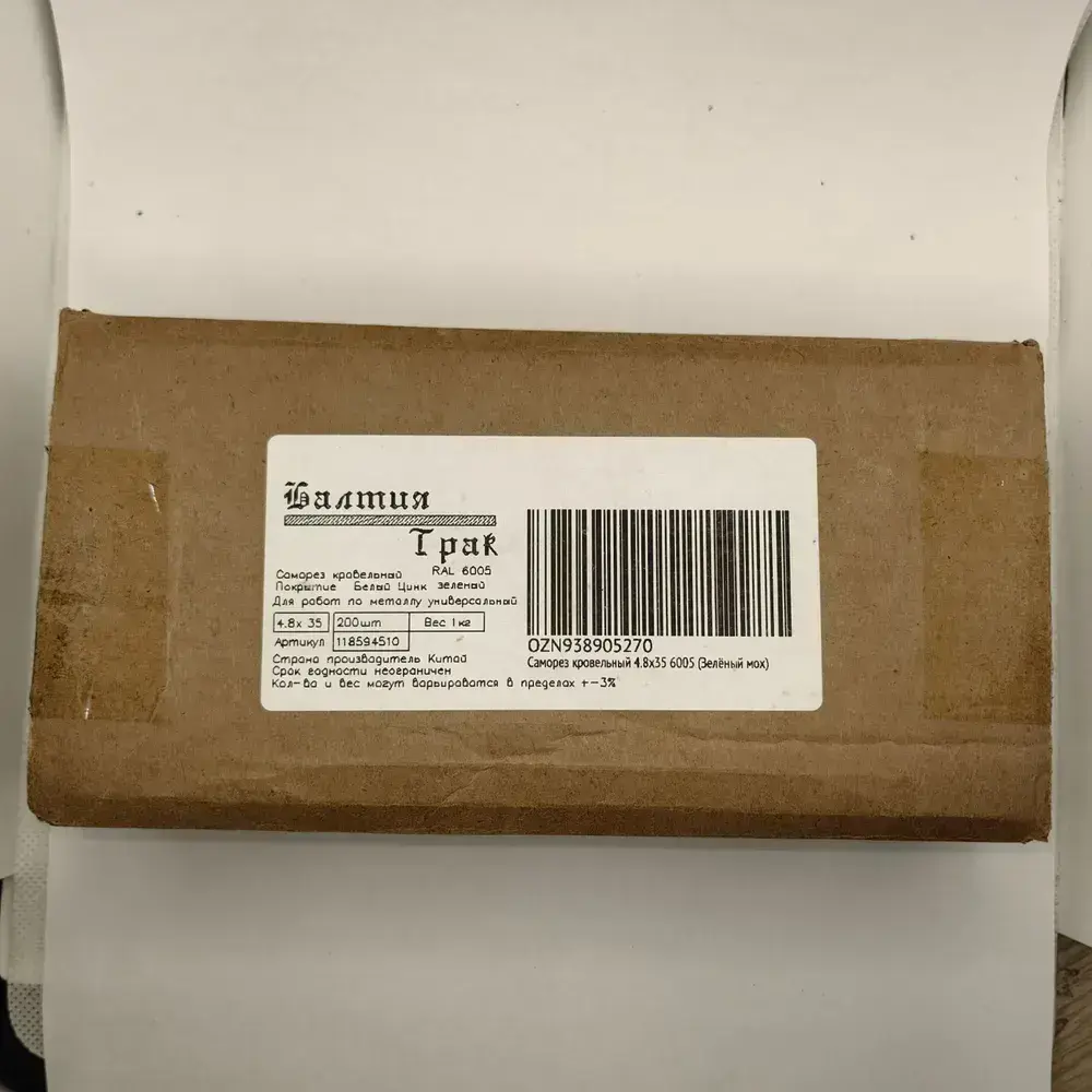 Саморез кровельный 4.8х35 6005 (Зелёный мох) 1кг