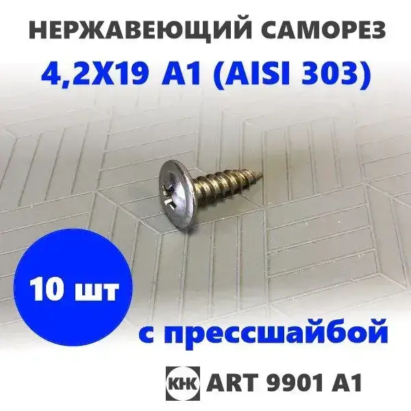 Саморез нержавеющий 4,2х19 с прессшайбой остроконечный КНК, нерж сталь, клоп Li, 10 шт.