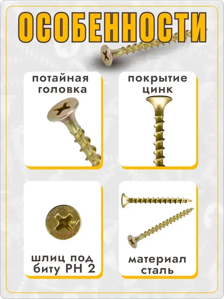 Саморез по дереву 3.5х50мм 100 штук желтые
