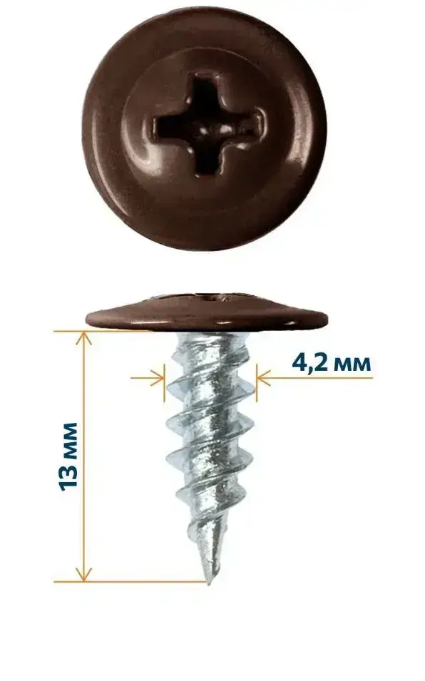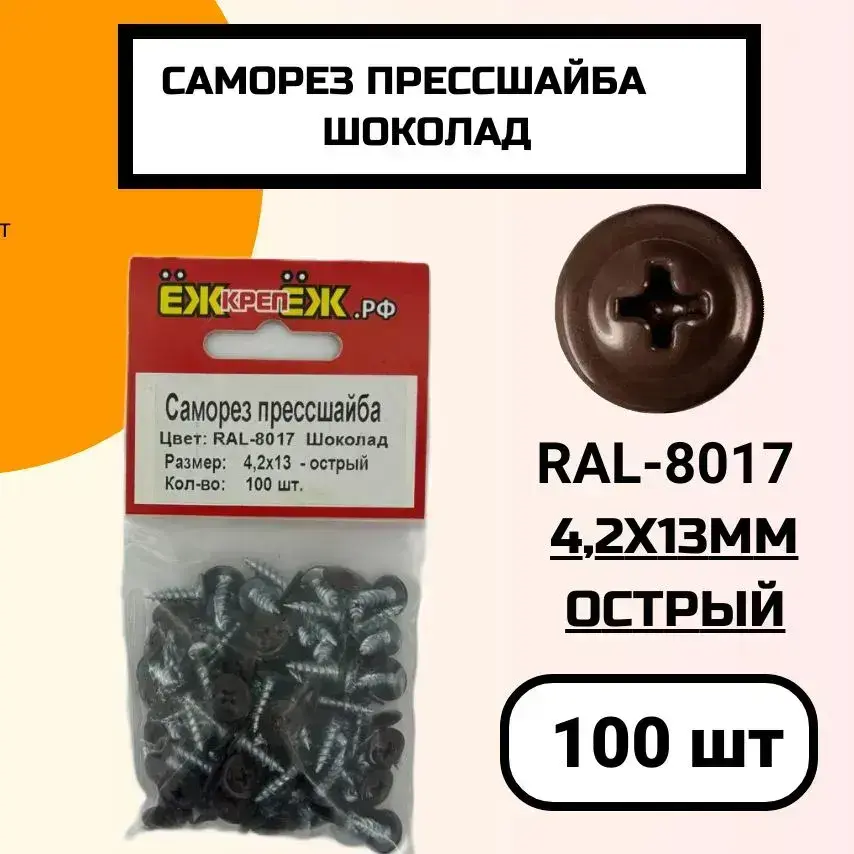 Саморез прессшайба 4,2х13 мм острый Шоколад RAL-8017 (100 шт.) ЁЖкрепЁЖ.