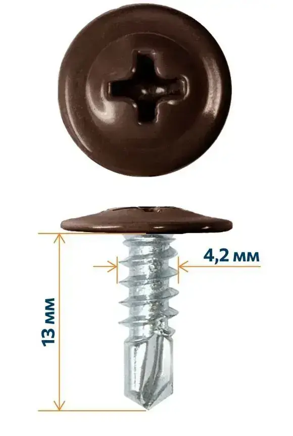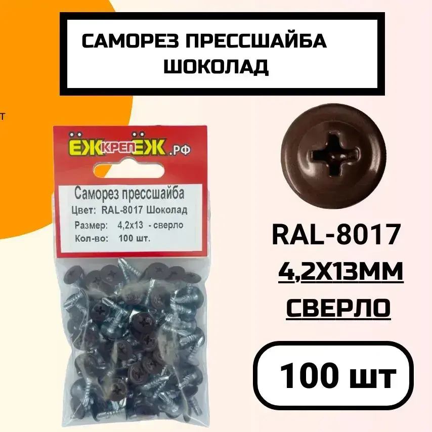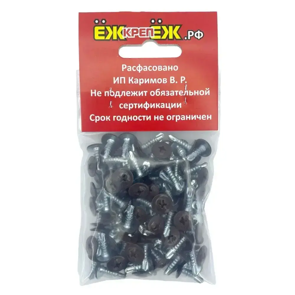 Саморез прессшайба 4,2х13 мм сверло Шоколад RAL-8017 (100 шт.) ЁЖкрепЁЖ.