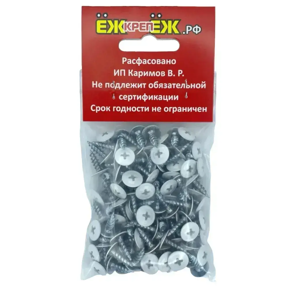 Саморез прессшайба 4,2х13мм острый Белый RAL-9003 (100 шт.) ЁЖкрепЁЖ.