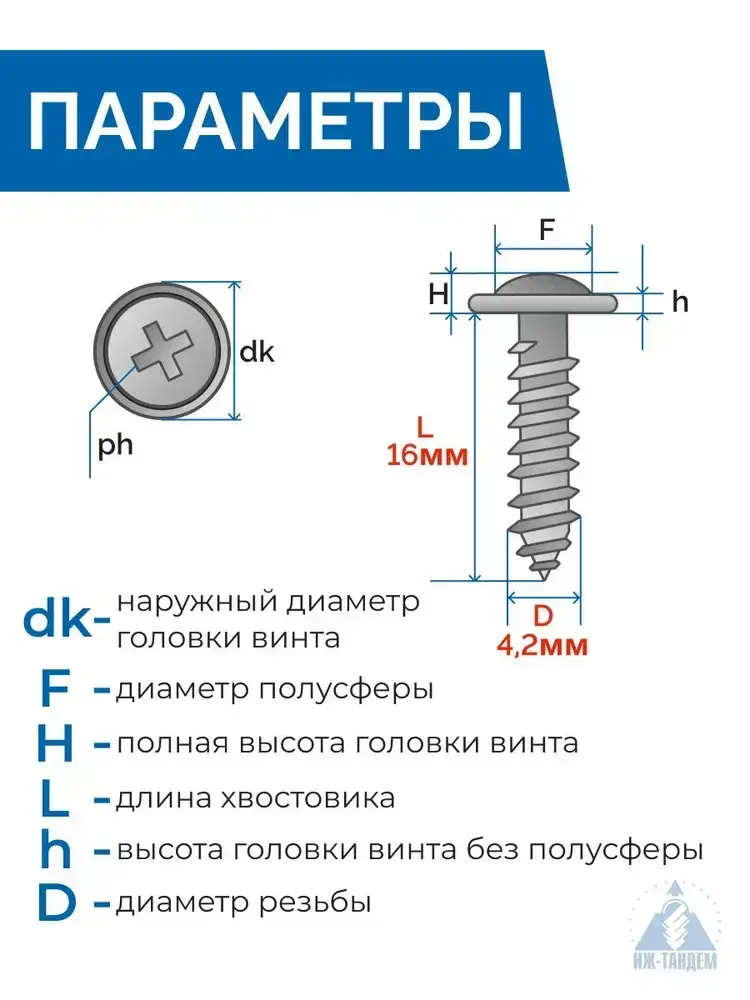 Саморез с прессшайбой 4,2 х 16 острый 100 шт